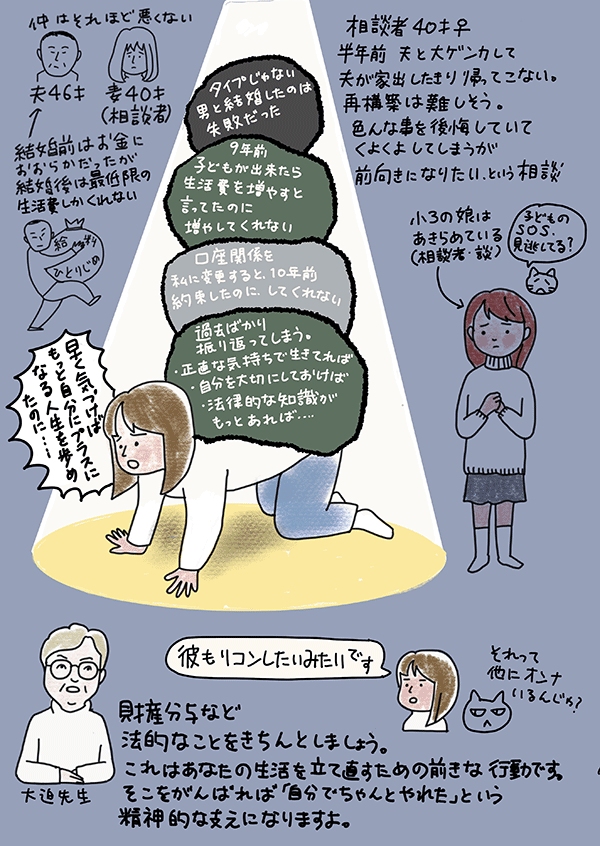 経済DVのダンナが家出して半年帰ってこない。後悔ばかりしてしまうが前向きになりたいという相談。