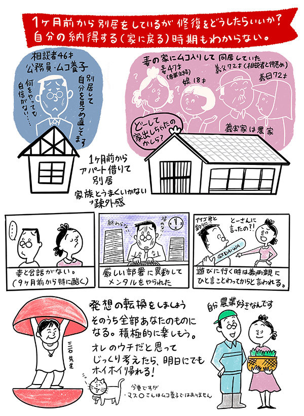家で疎外感、仕事ではメンタルをやられ家出したムコ養子のご相談。
