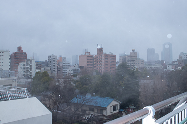 午後、雪!ミケーネは初めてみる雪を目で追ってる。寒いのに〜。