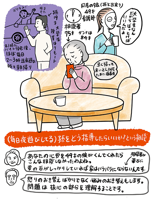 同居の孫が毎日夜遊び、2〜3時帰宅。どう指導したら?という75歳祖母の相談。