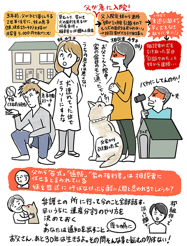 詳しくはコチラいつもありがとうございます!この絵にはないけど、相談者には兄、母(超仲悪い)が。父と母は35年前に離婚済み。