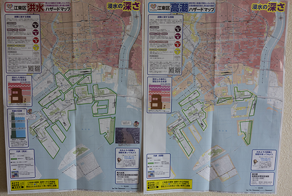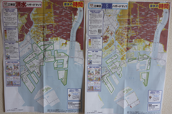 江東区の洪水と高潮のハザードマップがポストに入ってた。