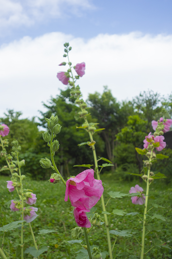 雨上がり、東陽町を散歩。タチアオイの季節。早いなー!