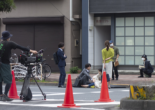 南開橋脇でドラマのロケしてた。日曜なのに(日曜だから?)