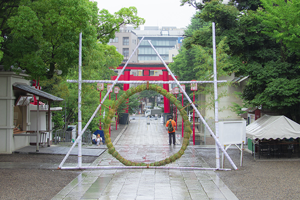 近所の八幡様で茅の輪くぐり。半年分の厄払い。