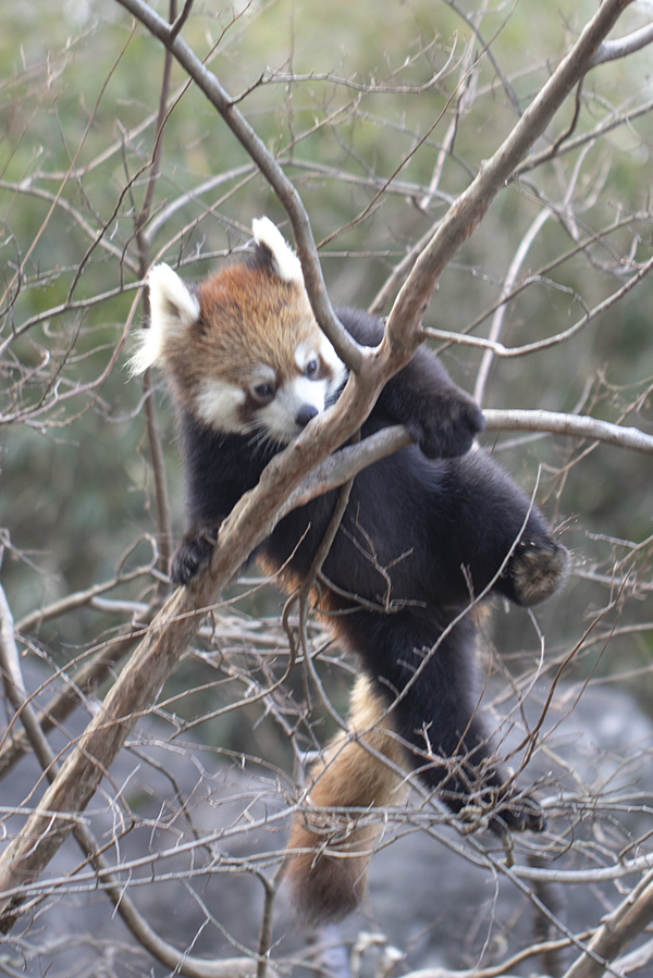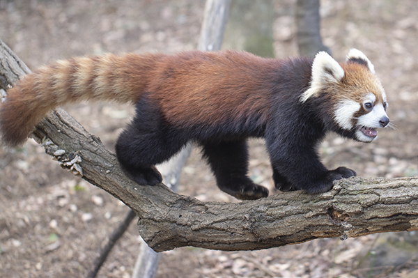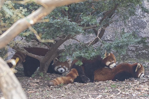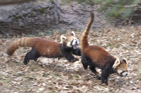 ユキヒョウとなりのレッサーパンダ。やんちゃな「ずん君」。お母さんのアズキちゃんも手を焼いてる模様。