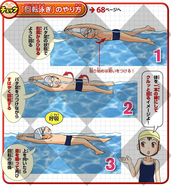 昨日はキックしながら回転する「回転泳ぎ」を。