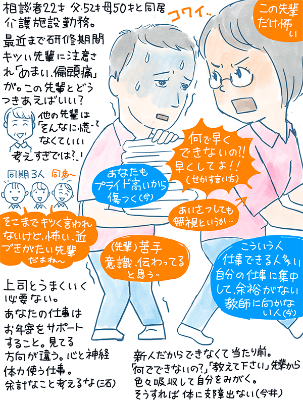 三石先生の「無視でOK」今井先生の「その先輩からいい所盗め」、どちらも相談者には参考になる回答だったようですが