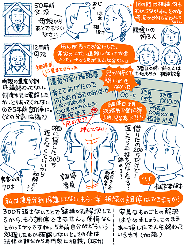 5年前、父の?遺産相続で兄に調停を起こしたが、当時兄から借りてた300万(本当は200万円のはず)を返さないでいいということで和解に不本意ながら返事してしまった。
