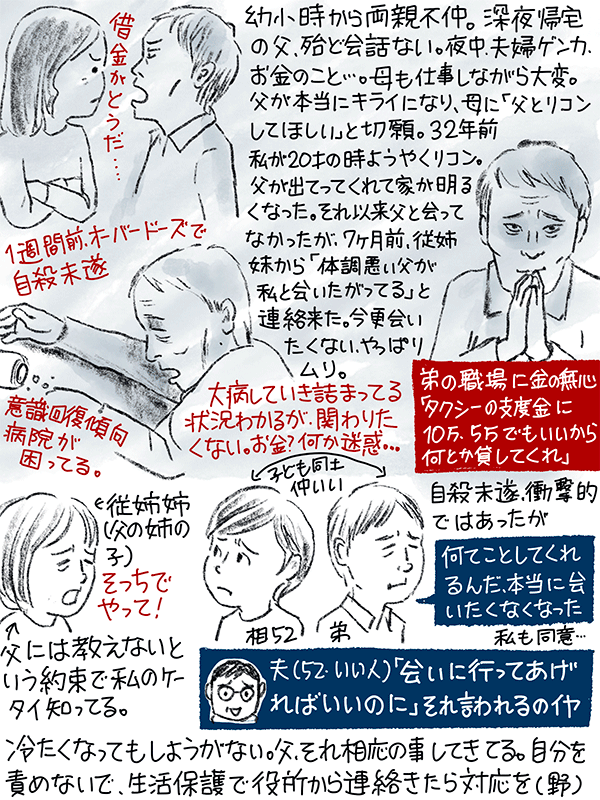 7ヶ月前に「体調悪化した父が会いたがってる」と従兄弟?から連絡が。会いたいと言われても、お金の催促?無理。