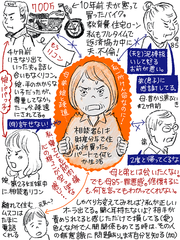 4ヶ月前に夫が手紙ひとつで出ていき離婚。2ヶ月前には母と弟とつまらない原因で絶縁状態。