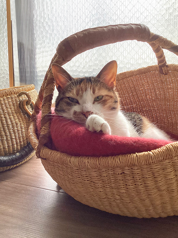 今日も鍋ネコ、ビーたん。2007年7月に保護団体から引き取ったので今年で15才、人間年齢換算で76才。
