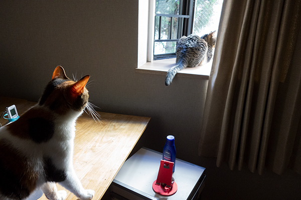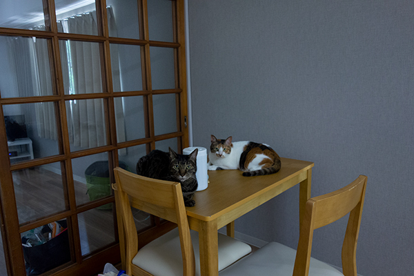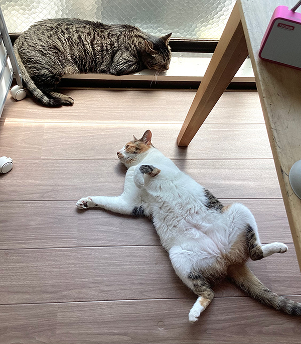 梅雨の走りのような天気が続く。晴れ間に日光満喫する猫ズ。