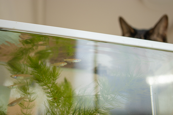 犯人はこのムスメ。メダカ食うしヘッドフォン断線するし、反抗期か?