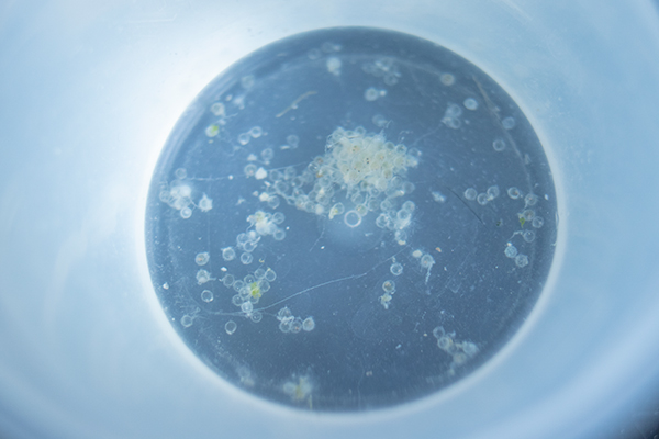 ヒメダカが産卵したので水槽から取り出した。「とびこ」みたいな感触。