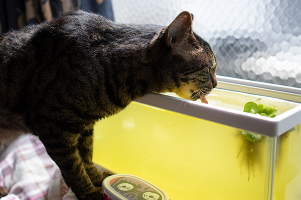今日も水槽の水を飲む猫ズ。