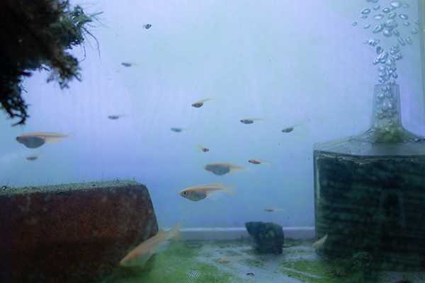 夏に10匹500円で買ったヒメダカ。今までに2匹死んだの確認したけど、今水槽にいるのは9匹。あれ?