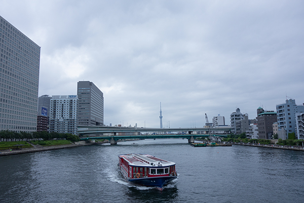 どんより重い曇り空。隅田川クルーズ船の「龍馬」お客が甲板に2人くらいしかいなかった。