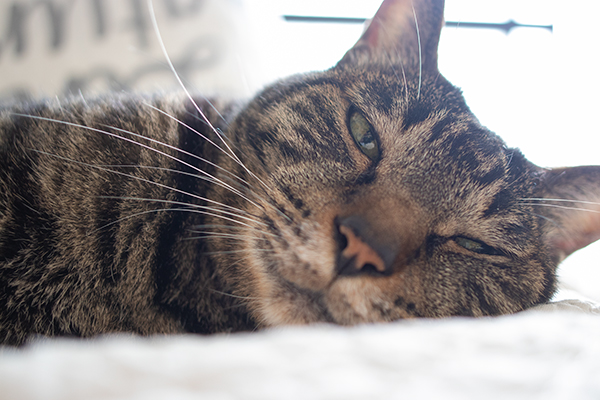 洗濯したてのソファカバーが早速猫毛だらけ〜。