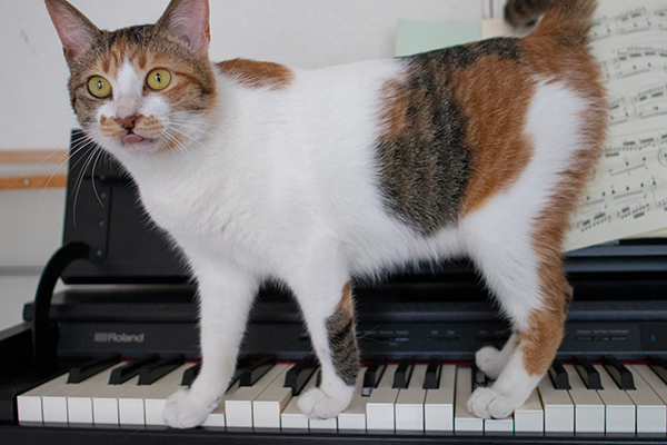 タマコがピアノ用の椅子を気に入ってしまい、今日も練習が…。
