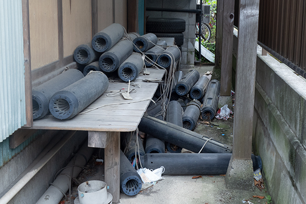 帰り周辺散歩。アナゴ漁の仕掛けが大量放棄。さすが元漁師町、23区内だけど(笑。