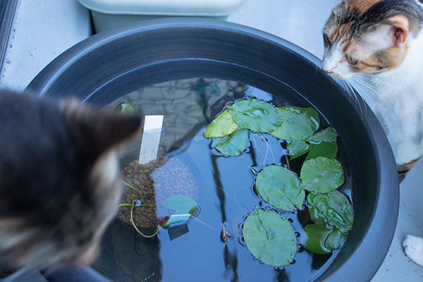 コーナンでミニスイレン2株(熱帯株1+温帯株1)と水蓮鉢買った。