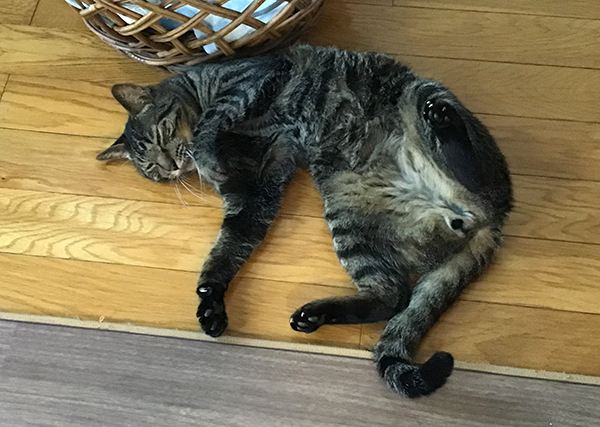 朝っぱらからビーたんもヘソ天。最近は午前中からエアコン必須。