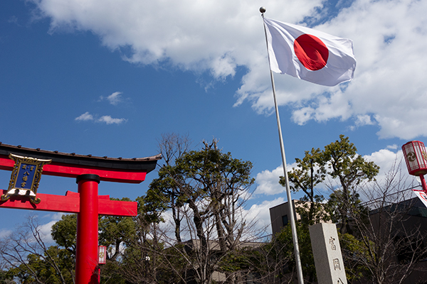 近所の神社が国旗掲揚してた。祈年祭だって。知らなかった。