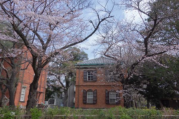 後ろの赤煉瓦校舎は1880年代築、関東大震災も乗り越えた。