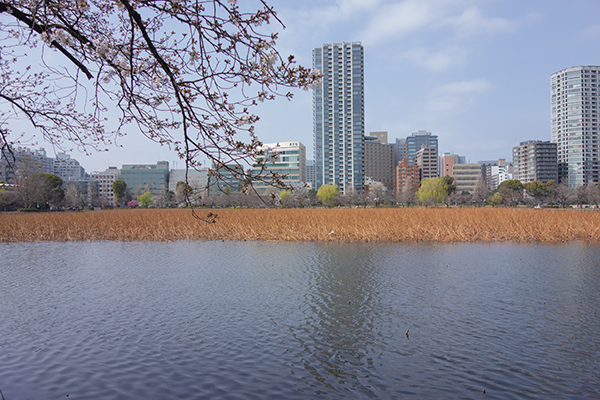 不忍池の桜並木もまだ。来週末あたり、桜と柳の若芽の色の春らしいコントラストが楽しめそうです。