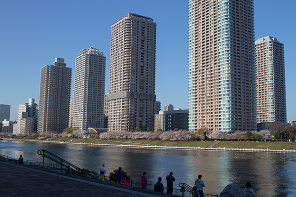 隅田川まで出た。大横川は満開だけど、隅田川沿いはまだの模様。