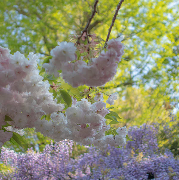 八重桜は散り始め、藤の花が咲き始めた。