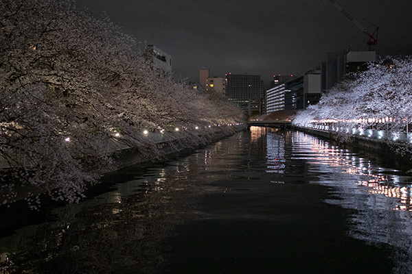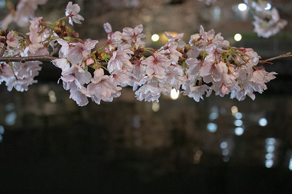 夜、雨がやんだので近所の夜桜見物。満開でした。