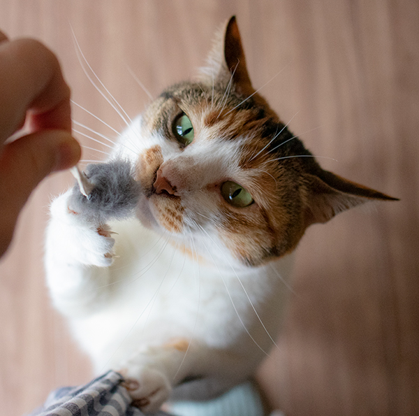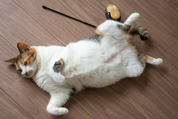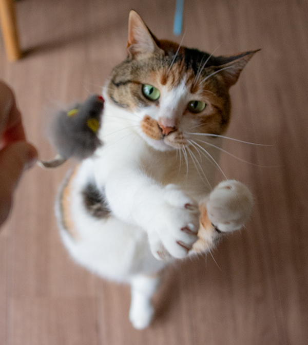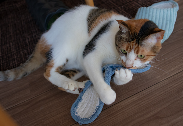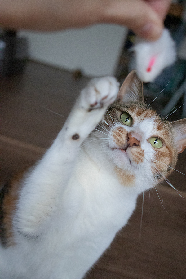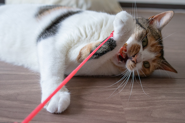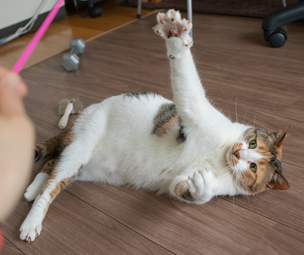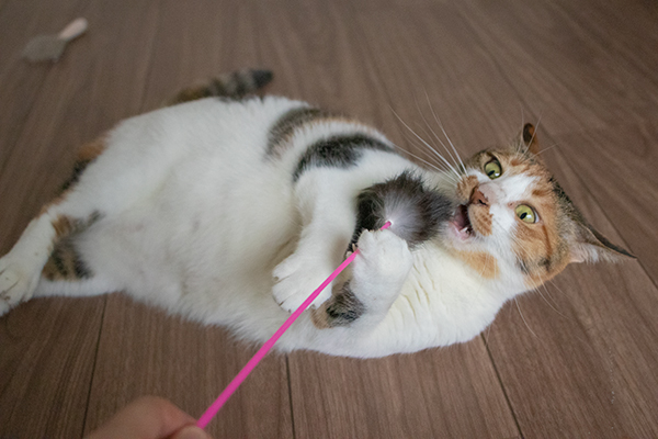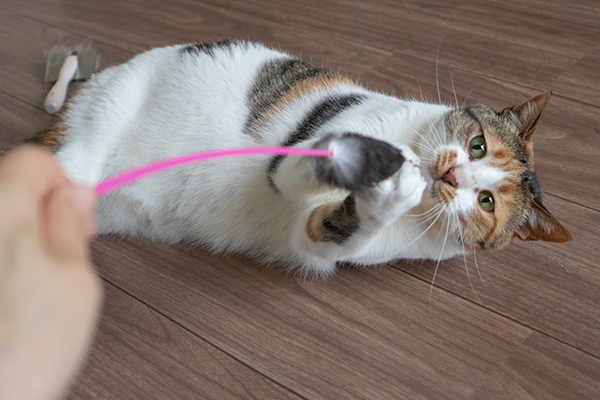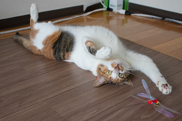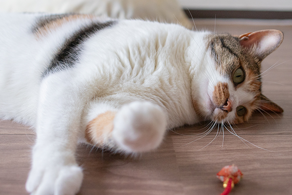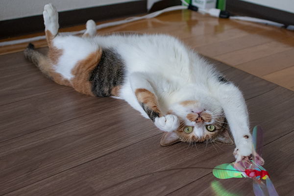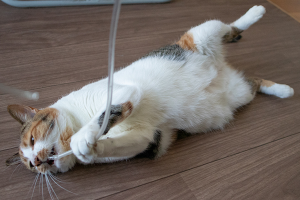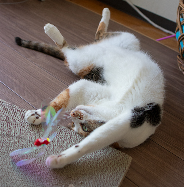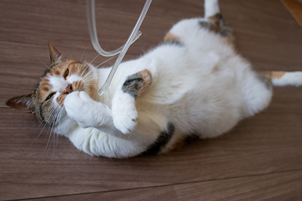 カシャカシャびょんびょんでさえ寝たきりで遊ぶ猫…。