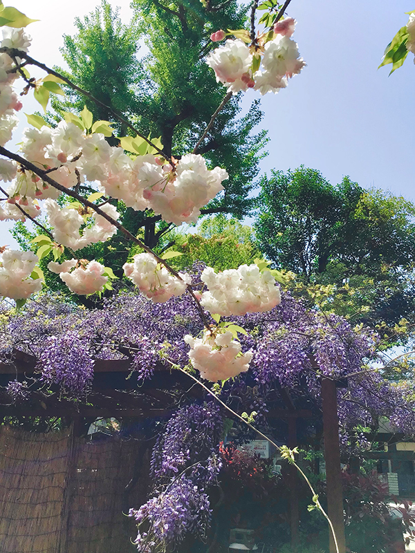 近所の神社の花が色々咲いてた。去年は紫色だったバラがピンクに。こんな事あるんだね〜。