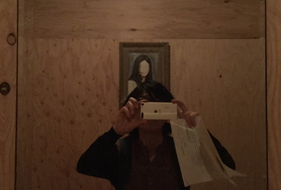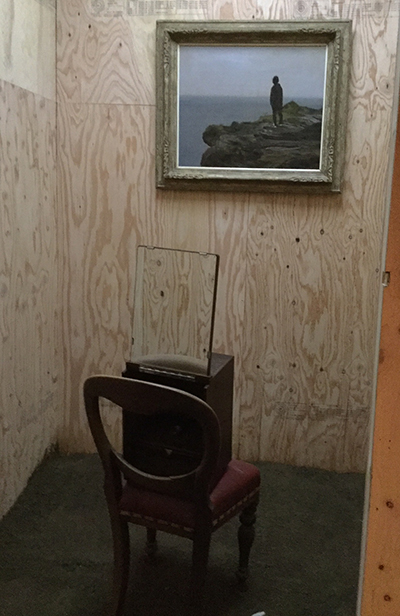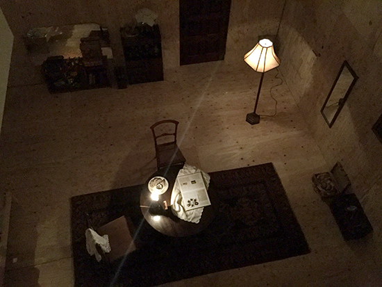 光の彫刻:スポットライトと加湿器で蒸し暑い空間。他の部屋が冷房効いてるのでホッとするw.大昔行った戸川純のライブを思い出した。