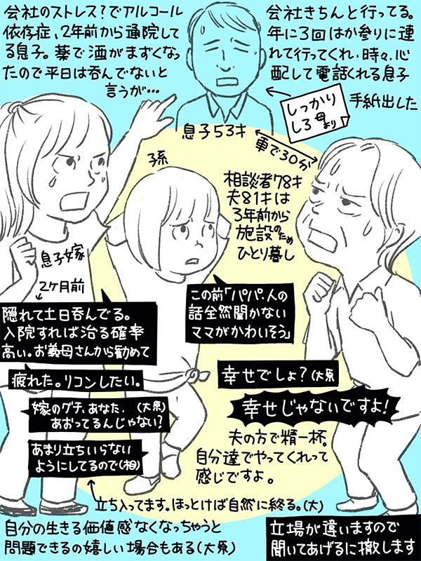 息子は仕事があるから入院できない、嫁はアルコールで生活変わり疲弊してる。