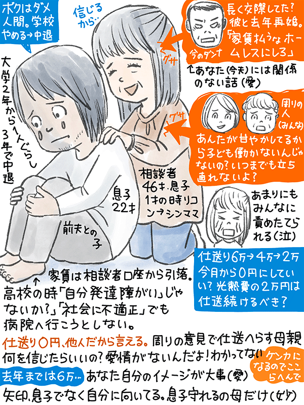 義母が仕送りしているが、それをやめればホームレス係に相談、生活保護を受ける事ができるのでは?という60歳女性のご相談。