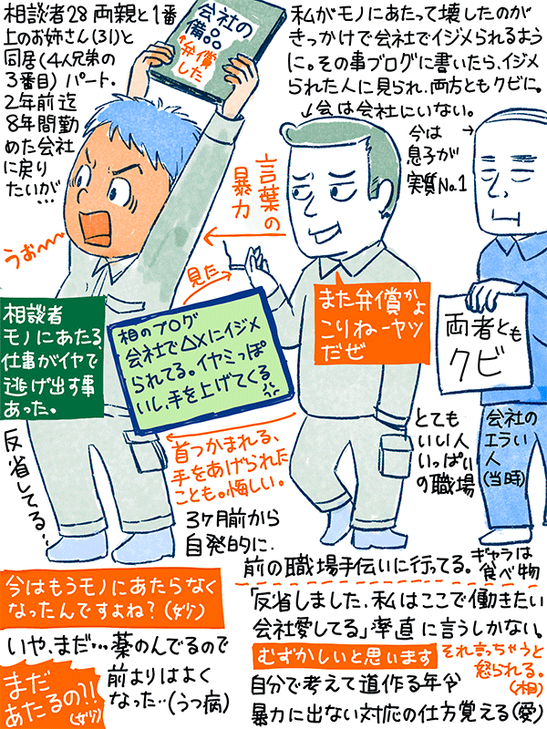 3年前に、8年間勤務の会社でモノにあたり、会社の人からいじめられるように。