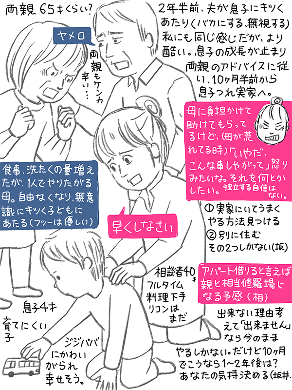 夫が息子にキツくあたるので、両親のアドバイスもあり実家に戻り