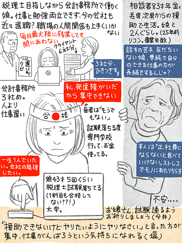 仕事が長続きしない娘、税理士の勉強をしながら会計事務所で働いているが