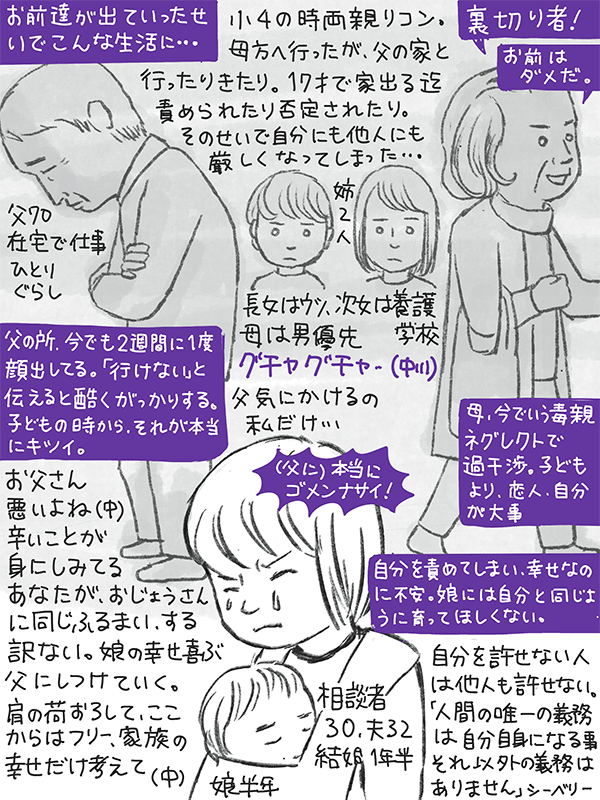両親が離婚、毒親の母と父の間を行ったり来たり。責められたり否定されで育ったので