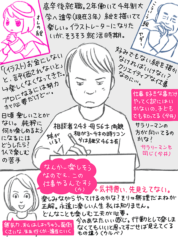 将来、楽しみながら(イラストレーターを?)やっていきるのか不安という