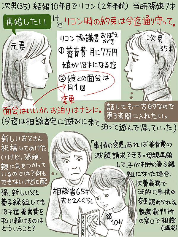 孫娘が養子縁組した場合、義父が養っていても養育費は18まで払い続けるのか?という65歳女性のご相談。