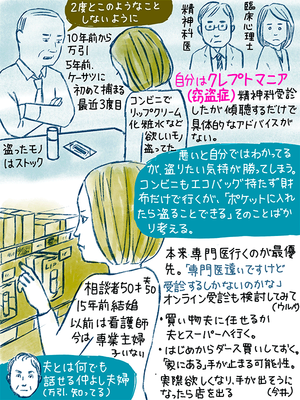 クレプトマニア(窃盗症)治療のため精神科受診したが、傾聴するだけで具体的なアドバイスが無い。