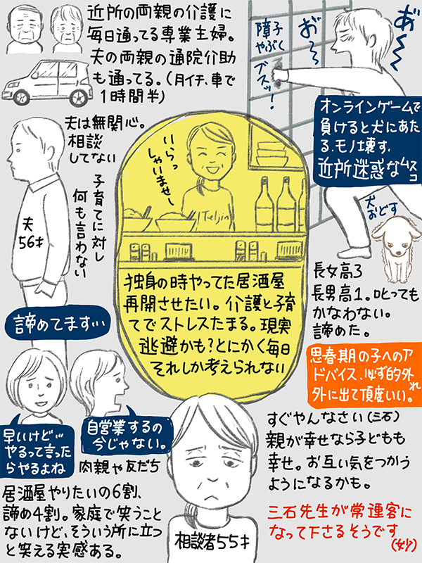 介護と子育てでストレスがたまる毎日、独身の時やってた居酒屋を再開させたいが