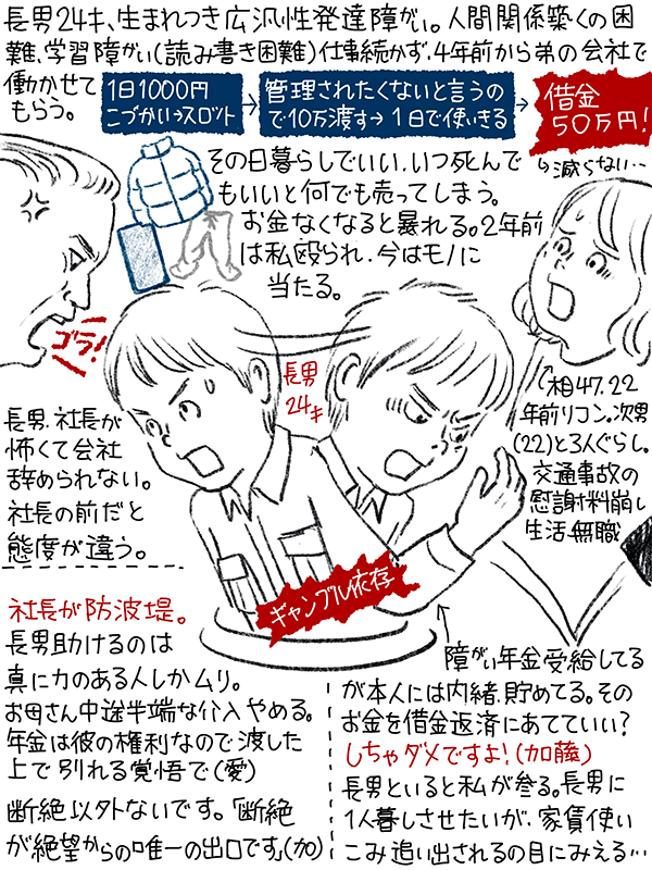 生まれつき広汎性発達障害のある長男、4年前からギャンブル依存症に。