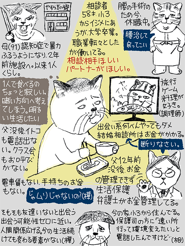 暗い方向へ考えてしまうが、何でも話し合える人がほしい明るい生活がしたいという58歳男性のご相談。