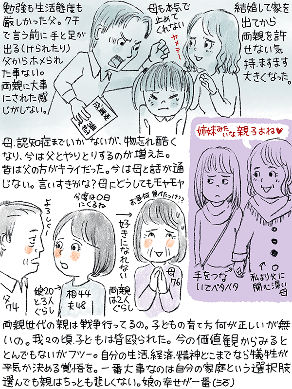 勉強、生活態度に厳しく、クチより手が先に出てた父。母は本気でそれを止めてくれなかった。