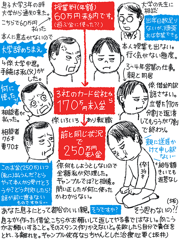 大学授業料未納60万円、カード支払い未入金170万、250万と借金を繰り返す倅。